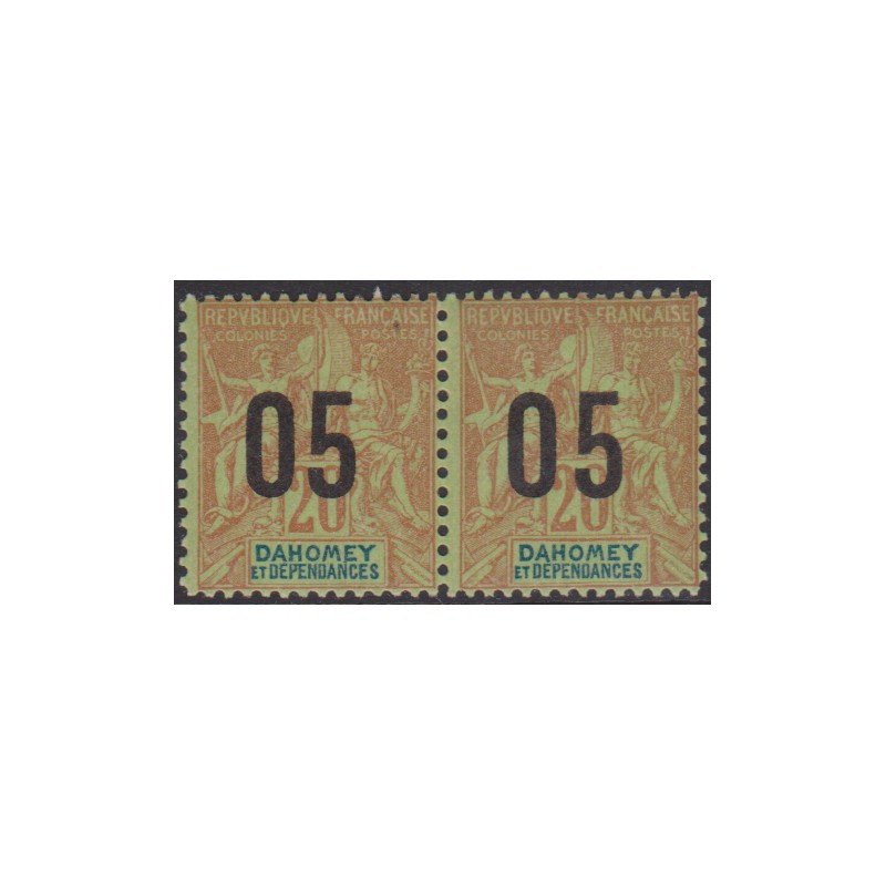 Dahomey 36Aa** Variété chiffres espacés tenant à normal