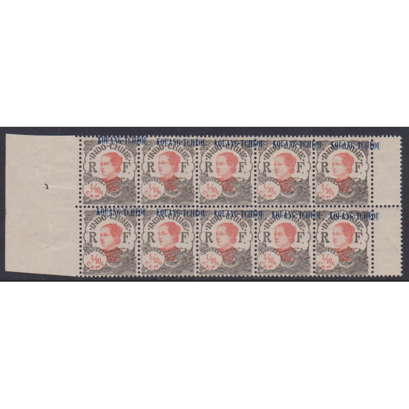 Kouang-Tcheou 52** Variété surcharge déplacée en bloc de 10