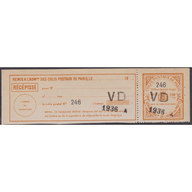 France Colis postaux Paris pour Paris 152a**