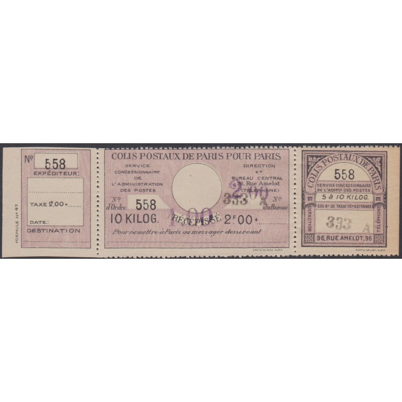France Colis postaux Paris pour Paris 189**