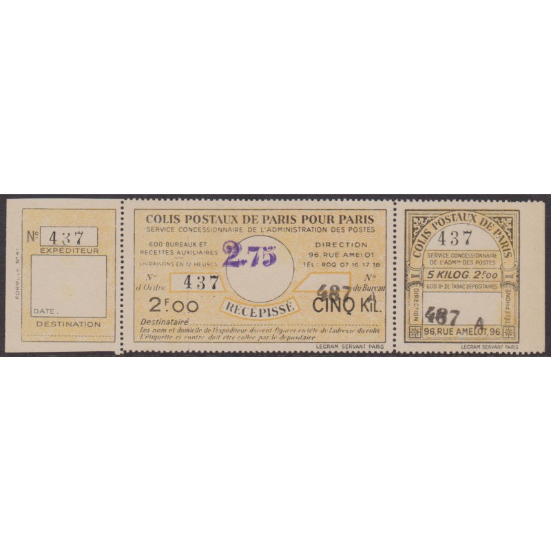 France Colis postaux Paris pour Paris 192**