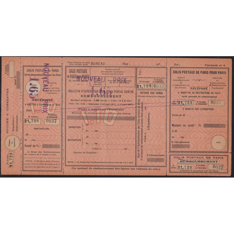 France Colis postaux Paris pour Paris 93a**