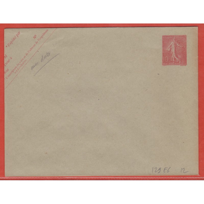 France Entier postal 129 E6 AVEC DATE Type Semeuse lignée