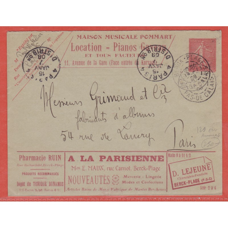 France Entier postal 129 Enveloppe annonce Type Semeuse lignée