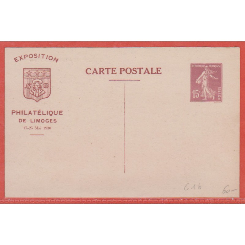 France Entier postal 189 G1b Limoges Type Semeuse camée