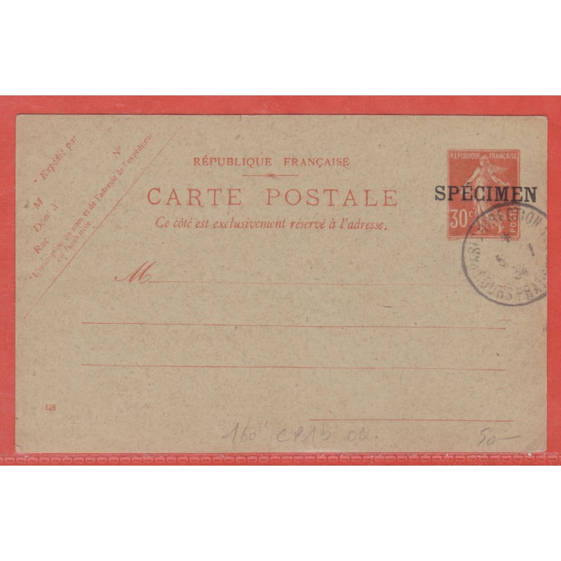 France Entier postal 160 CP1b Spécimen oblitéré Type Semeuse camée