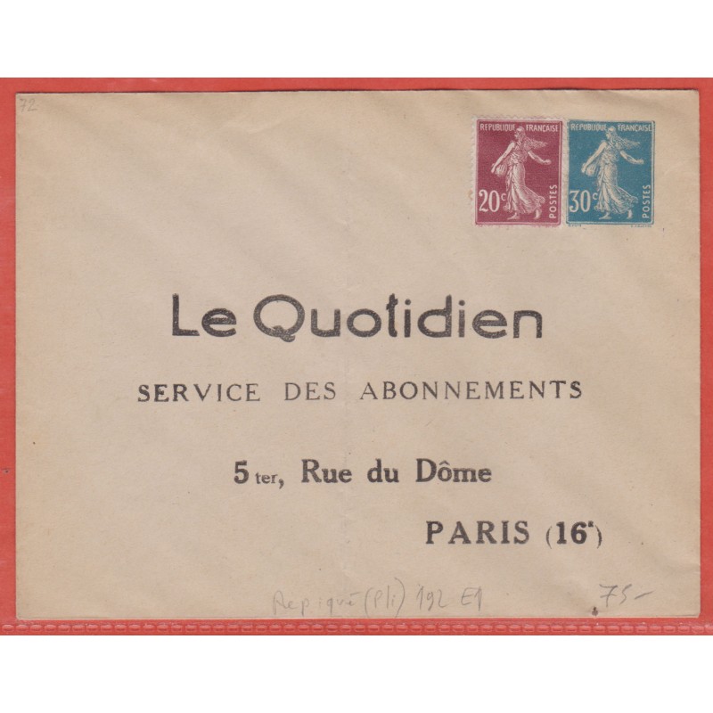 France Entier postal 192 E1 repiqué Type Semeuse camée (pli)