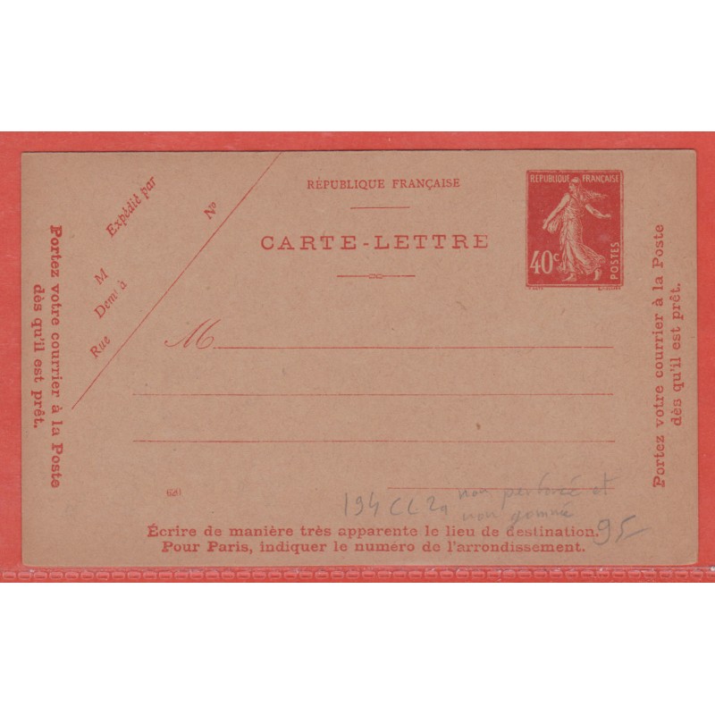 France Entier postal 194 CL2a non perforé ni gommé Type Semeuse camée