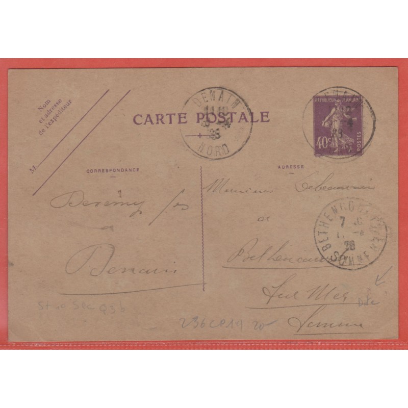 France Entier postal 236 CP1a avec date oblitéré Type Semeuse camée