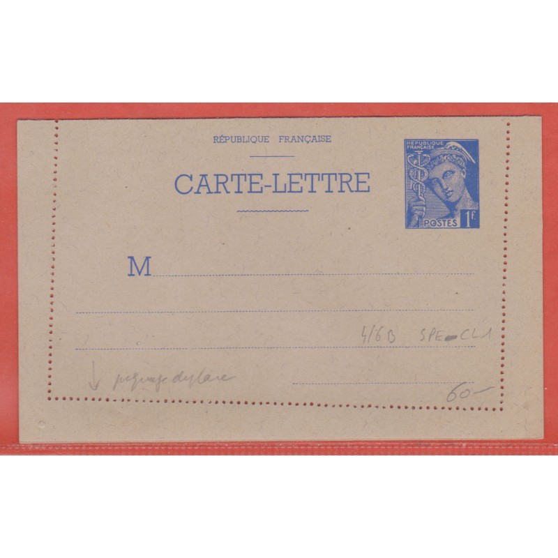 France Entier postal 416B SPE-CL1 piquage déplacé Type Mercure