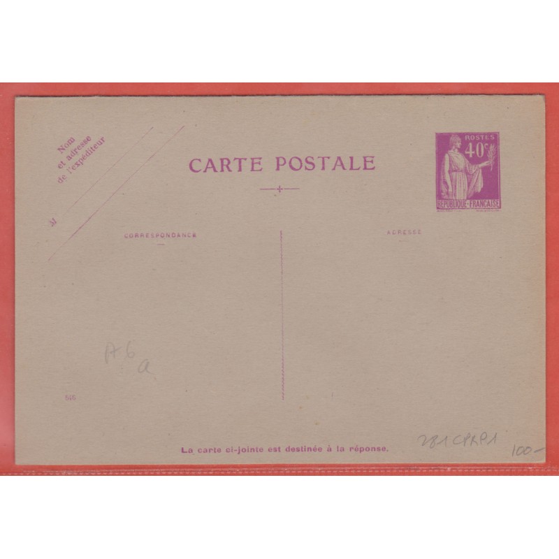 FRANCE ENTIER POSTAL 281 CPRP1 TYPE PAIX