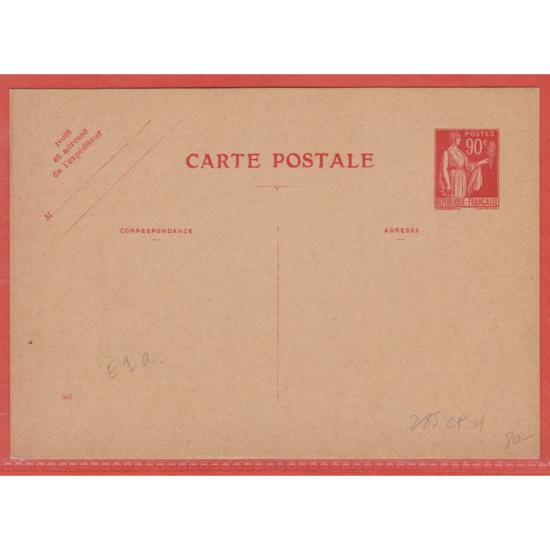FRANCE ENTIER POSTAL 285 CP1 TYPE PAIX