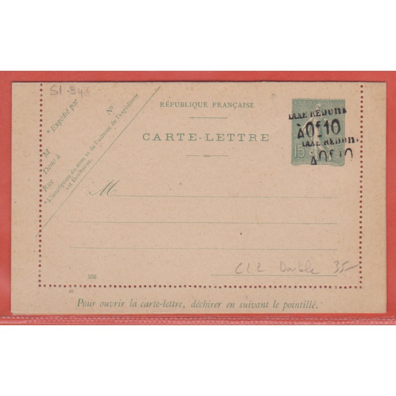 France Entier postal 130 CL2 double surcharge Type Semeuse lignée