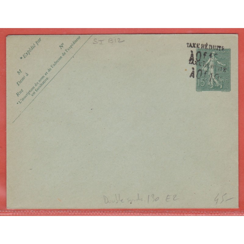 France Entier postal 130 E2 double surcharge Type Semeuse lignée