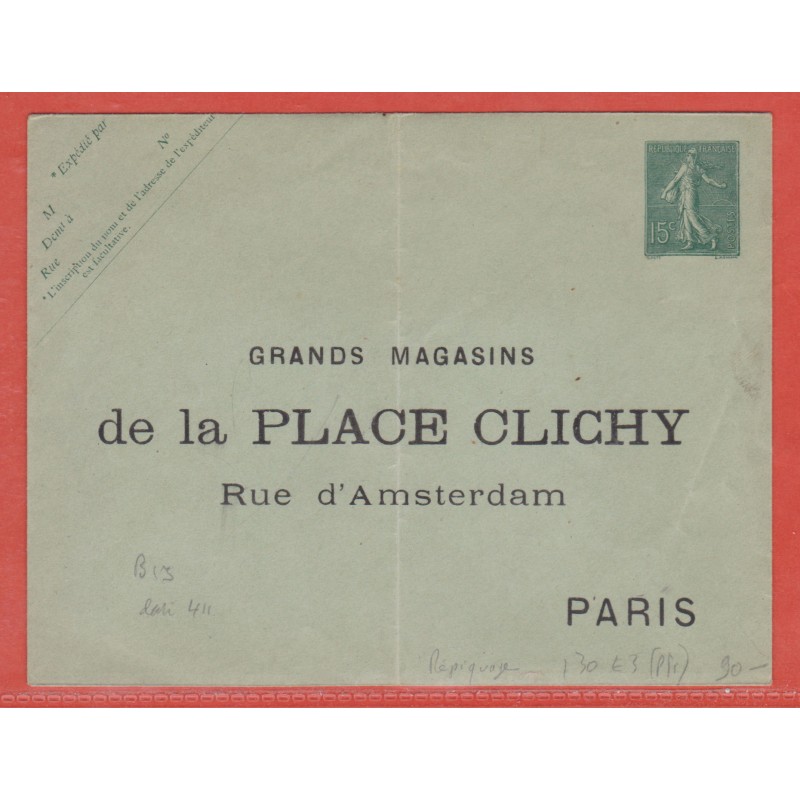 France Entier postal 130 E3 repiqué Type Semeuse lignée (pli)