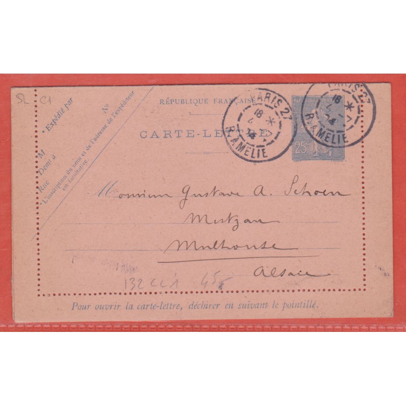 France Entier postal 132 CL1 oblitéré Type Semeuse lignée