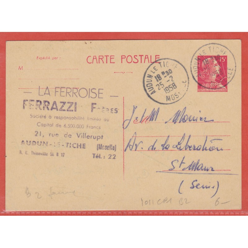 FRANCE ENTIER POSTAL 1011 CP1 B2 oblitéré TYPE MULLER