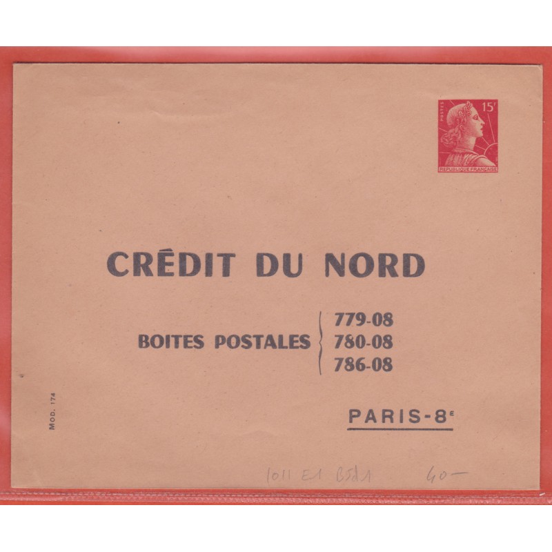FRANCE ENTIER POSTAL 1011 E1 B5d1 TYPE MULLER (pli)
