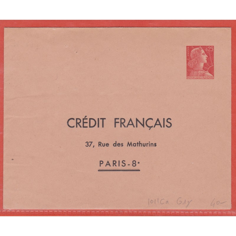 FRANCE ENTIER POSTAL 1011Ca G1g TYPE MULLER
