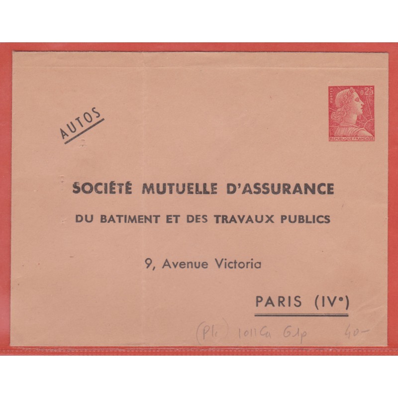 FRANCE ENTIER POSTAL 1011Ca G1p TYPE MULLER (pli)