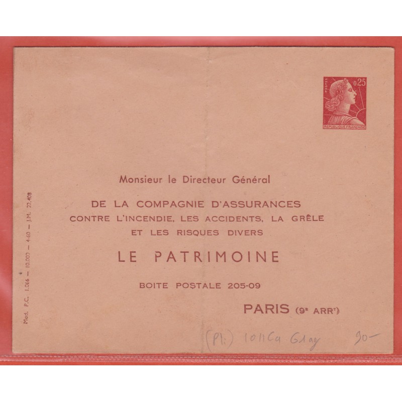 FRANCE ENTIER POSTAL 1011Ca G1ag TYPE MULLER (pli)