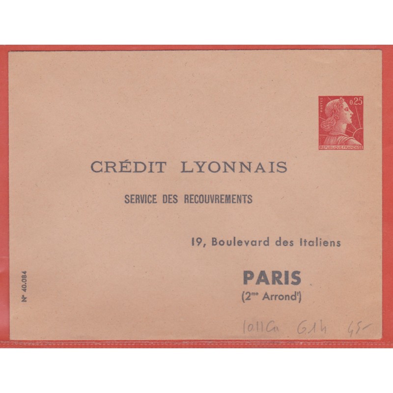 FRANCE ENTIER POSTAL 1011Ca G1h TYPE MULLER