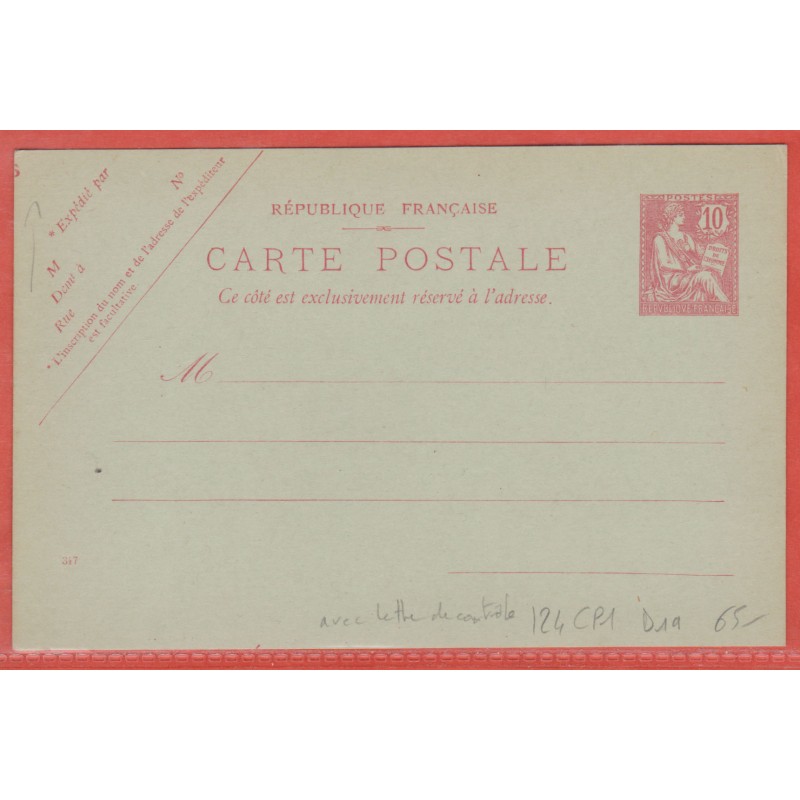 France Entier postal 124 CP1 D1a lettre de contrôle Type Mouchon