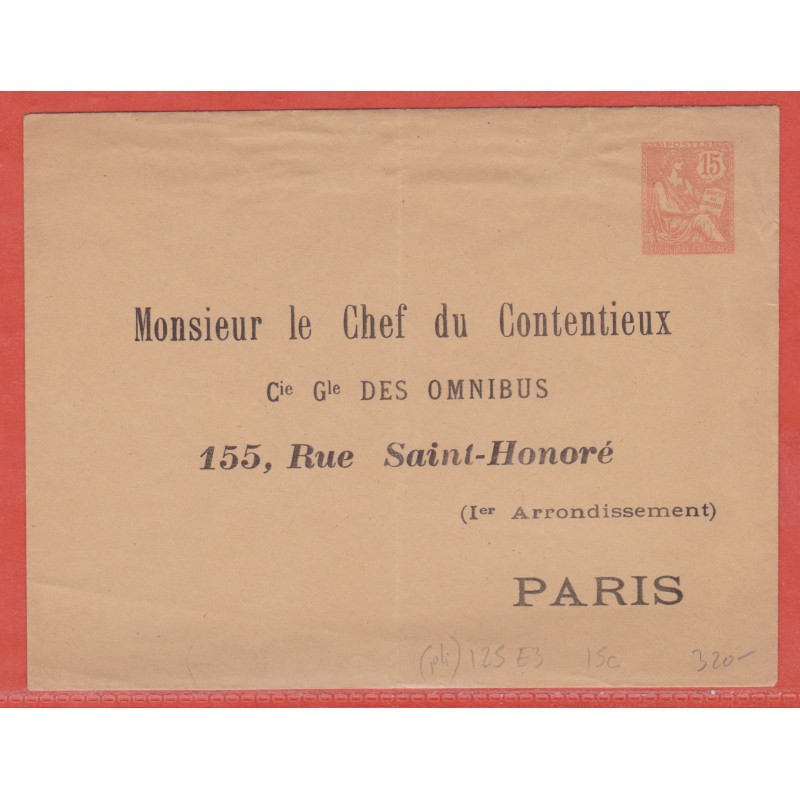 France Entier postal 125 E3 15c Type Mouchon (pli)