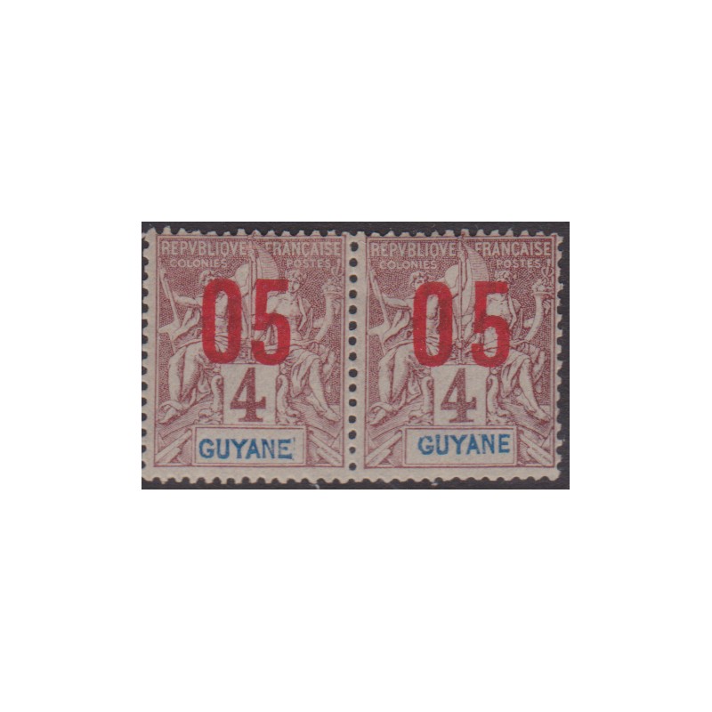 Guyane 67Aa** Variété chiffres espacés tenant à normal