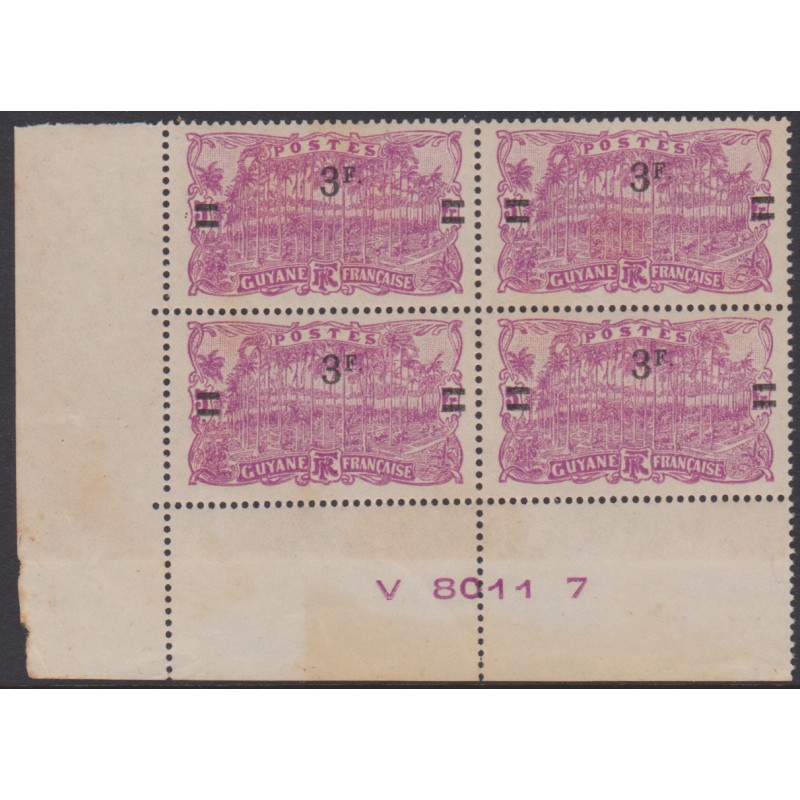 Guyane 105** bloc de 4 coin daté (rousseurs)