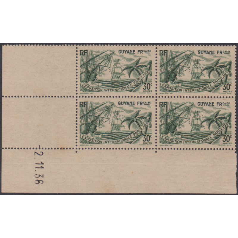 Guyane 144** bloc de 4 coin daté (rousseurs)