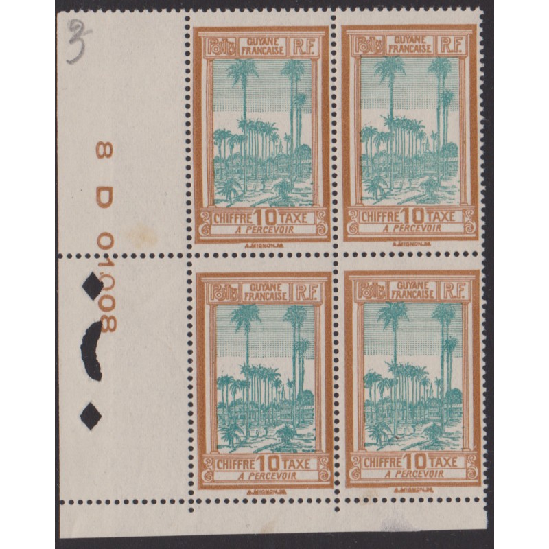 Guyane taxe 14** bloc de 4 daté